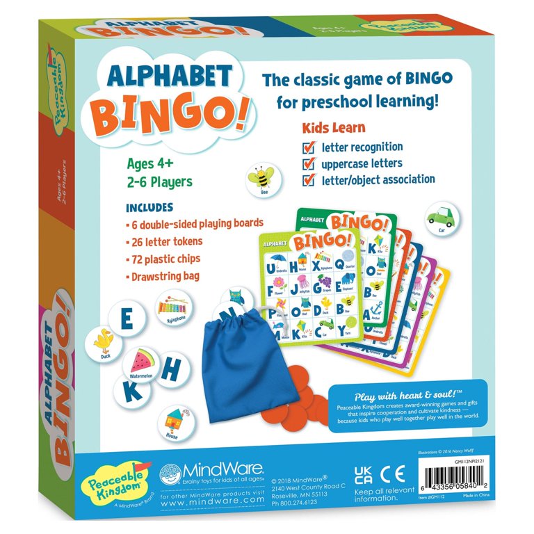 Peaceable Kingdom Alphabet Bingo Letter Learning Board Game For Kids Ages 4 Walmart Com
